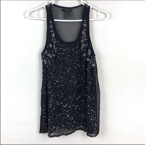 Forever 21 Black tank. Sequins and beading. Beautiful top lined front.