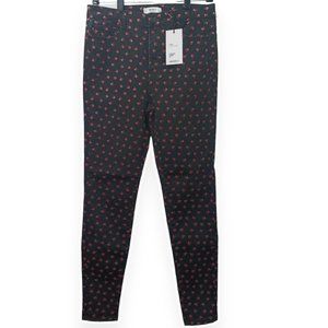 Forever 21 Black with Red Roses High-Rise Skinny-Fit Jeans Size 8