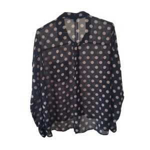 Forever 21 Black with Tan Polka Dots Long Sleeve Sheer Blouse