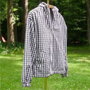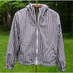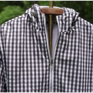 - Cute black and white gingham check zip up hooded crop windbreaker rain jacket by Forever 21
