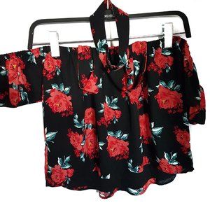 Forever 21 Black/Red Floral Off-Shoulder Top - Size S - NWT