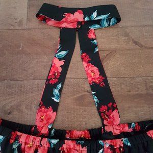 Forever 21 Black/Red Floral Off-Shoulder Top - S