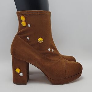 Forever 21 Block Heels Stretchy Faux Suede Pull On Customized Boots Tan Size 8