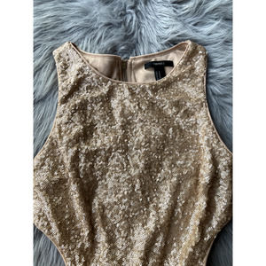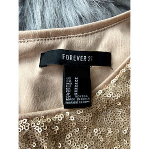 Forever 21 Blouse Sz M Nude Metallic Sequin Top Party Peplum Glitter Glam Cutout