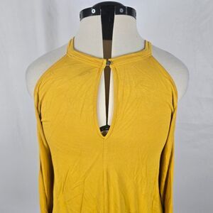 Forever 21 Blouse Women's 0X Yellow Long Sleeve Cold Shoulder Key Hole Back