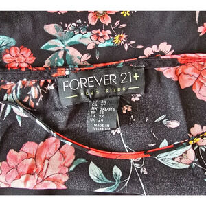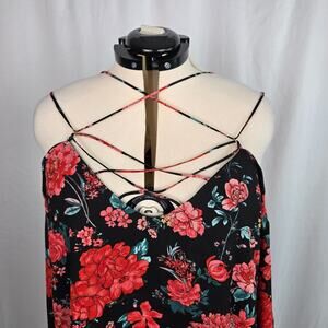 Forever 21 Blouse Women's 3X Black w/ Red Pink Floral Cold Shoulder