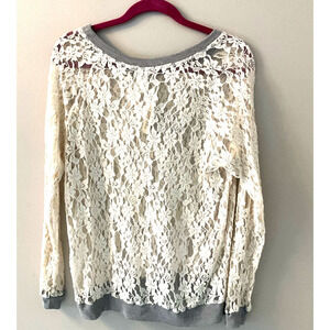 Forever 21 Blouse Women's Size L Cream Sheer Lace Long Sleeve Crew Neck Pullover