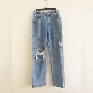 Forever 21 Blue Cargo Flare Wide Leg Jeans