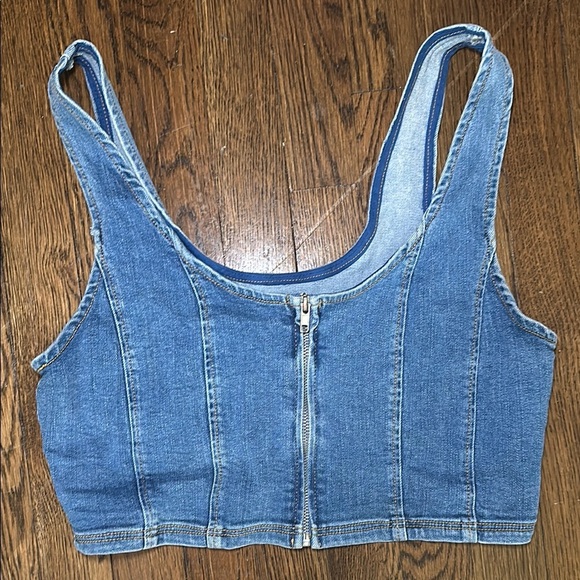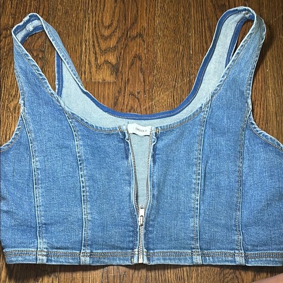 Forever 21 Blue Denim Crop Top with Front Zipper