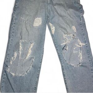 These Forever 21 jeans feature a striking blue hue with a trendy flare and wide leg design. The denim is crafted to offer a relaxed fit, perfect for a casual yet stylish look. The jeans' unique silhouette adds a touch of modern flair to any outfit.