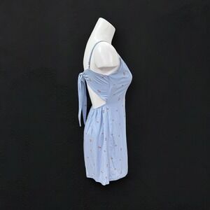 Forever 21 Blue Floral Mini Dress Tie Back Spaghetti Straps Size S