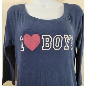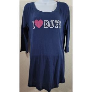 Forever 21 Blue White I Heart Boys Sleep Top Large Lightweight Stretchy Soft