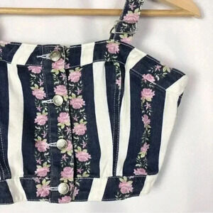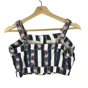 Forever 21 Blue & White Stripe Purple Floral Denim Crop Tank Top M