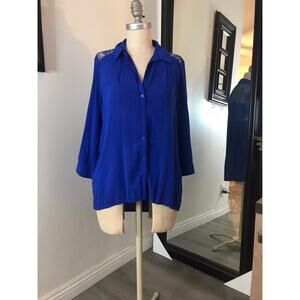 Forever 21 Blue Women's Lace Button Down V-neck 3/4 Sleeve Blouse Medium