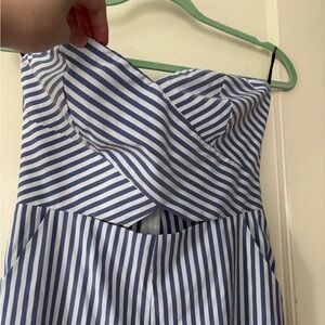 Forever 21 Blue and White Striped Strapless Jumpsuit