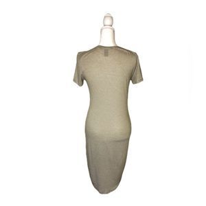 Forever 21 brand cute basic simple minimalist casual daily everyday wear versatile any occasion staple piece throw on weekend comfy dress up or down going out summer spring season warm weather versatile comfortable layering solid olive green tan color and white silhouette knee length midi graphic bodycon dress in US size small for women!