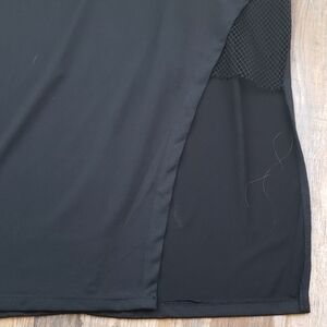 This Forever 21 bodycon tube dress adds va-va-voon with mesh! Top of dress is ruched and from the hem at a diagonal there is a slit that is shows a mesh fabric. Bottom of slit is open to enable movement. Every woman needs a dress like this in their life.