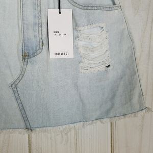 Forever 21 Boho Jean Mini Skirt, distressed details. NWT.