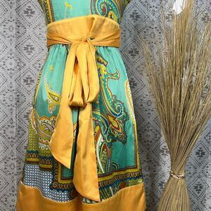 Forever 21 Boho Paisley Print Satin Dress Yellow and Green Small