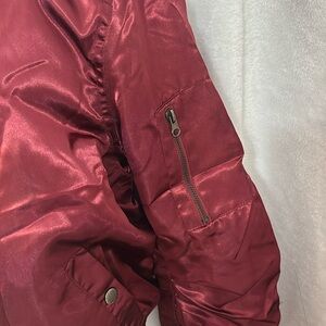 Forever 21 Bomber Jacket Shiny Burgundy Ruched Sleeve Lightweight L