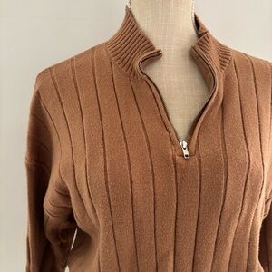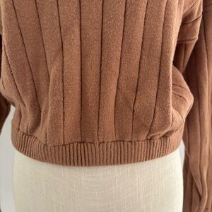 Forever 21 Brown Cowl Neck Sweater with Ribbed Texture