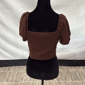 Forever 21 Brown Puff Sleeve Crop Blouse