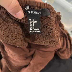 This stylish brown blouse from Forever 21 features charming puff sleeves and a ruched design, creating a flattering and textured look. The crop style adds a modern touch, making it a versatile piece for various occasions.