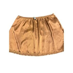 Forever 21 Brown Satin Mini Slip Skirt Lace Trim Floral Bow Detail M romantic