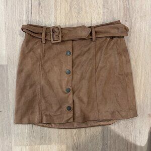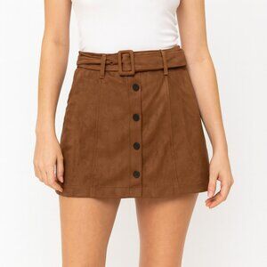 Forever 21 Brown Suede Mini Skirt Size Small Belt Button Front