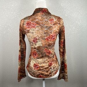 Forever 21 Brown & Tan Gold Tinsel Floral Lace Boho Long Sleeve Top Size Medium