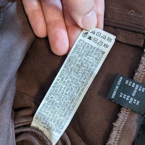 Forever 21+ mini skirt. The skirt is a tulip skirt, with a faux wrapping look. The front panel has some ruching to make it more flattering. It's polyester and spandex (so it has some stretch), but it has a soft feel almost like suede. There is a hidden zipper in the back of the skirt. Size 3X