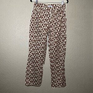 Forever 21 Brown and Cream Floral Straight Leg Jeans