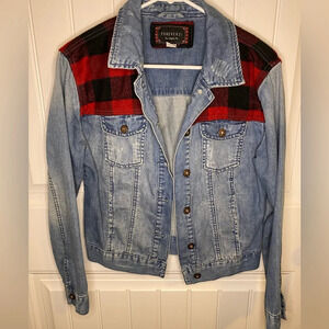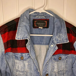 Forever 21 Buffalo Plaid Distressed Denim Jacket