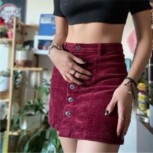 Forever 21 Burgundy Corduroy Button-Front Skirt Small