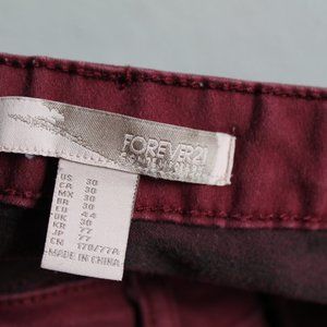 Forever 21 Burgundy/Red Pants. Size 30. Inseam is 27 1/2 inches. These pants have no stains, rips or tears.