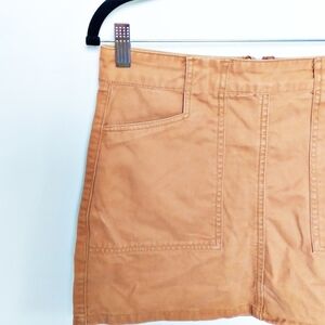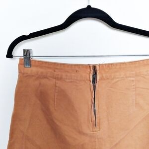 Forever 21 burnt orange rust 100% cotton denim mini skirt with an exposed back zipper closure and pockets.