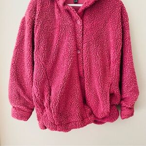 Forever 21 Button Up Sherpa Sweater/Jacket Maroon Sz Small