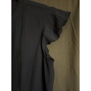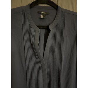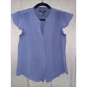 Forever 21 Button Up Top Size Small Short Ruffle Sleeved Blue Chiffon Pleated