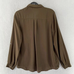Forever 21 Button Up Womens S Brown Knit Long Sleeve Collared Zip Pocket