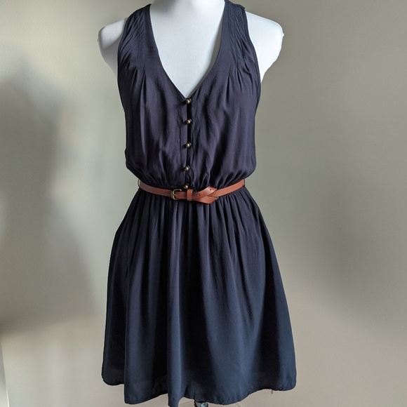 Cute button-front belted mini dress by Forever 21 in navy, size medium. Features include: