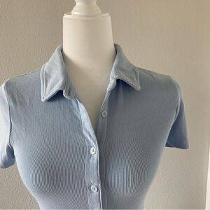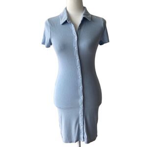 Forever 21 Button Front Tee Dress Ribbed Short Sleeves SZ S
