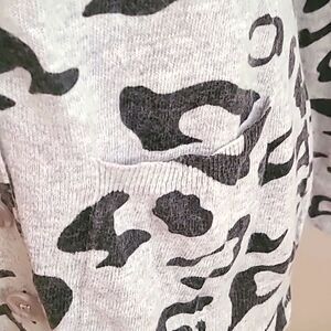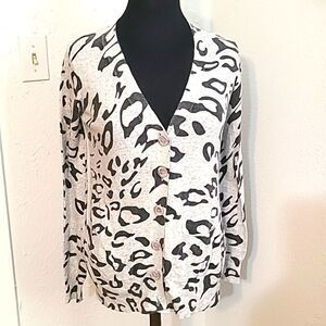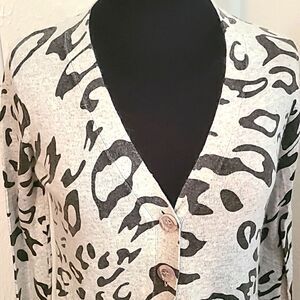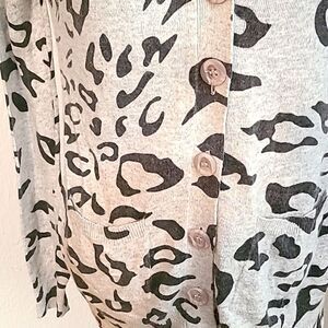 Forever 21 Buttondown Cardigan, Light Gray with Black Animal Print, Size Large