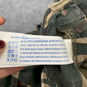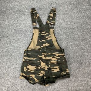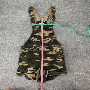 Forever 21 Camo Denim Overalls Womens 27 Cuffed Pockets Stretch Cotton Shortalls