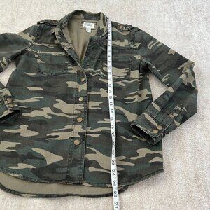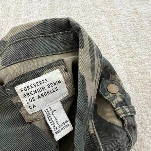 Forever 21 Camo Long Sleeve Denim Snap Shirt Jacket Shacket S