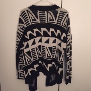Black and white cardigan from forever 21, no longer sold in stores, goes down to your upper thighs, great for winter and fall! WORN ONCE! From the shoulder to bottom most piece of the cardigan - Front: 32in Back: 25in