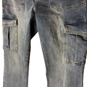 Forever 21 Cargo Flare Denim Jeans Sz 27 (29X33) High Rise Light Casual Grunge