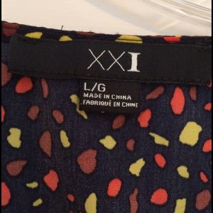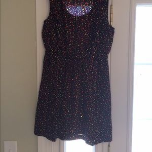F21 Dress, size large. Scrunched waist. Black, yellow and orange speckled pattern.