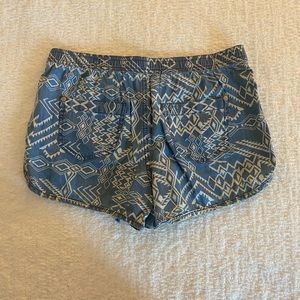 Worn a few times - no imperfections! Cotton blend chambray shorts with pretty Aztec design, elastic waistband with draw string,