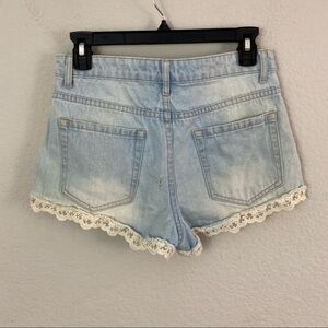 Forever 21 Chambray Lace Edged Distressed Jean Shorts Hi Rise 27