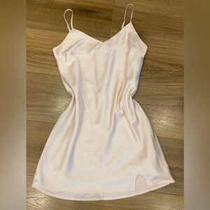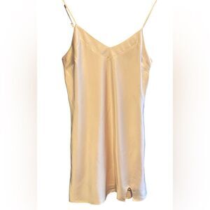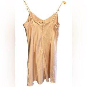 Lined, new condition, 2” slit, zipper and hook and eye closure on back l, adjustable straps.